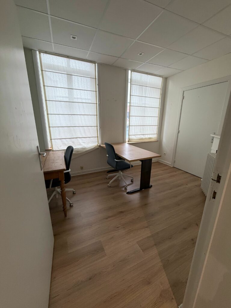 Prix de location de ce bureau: 550€ HTVA/mois. La formule est toutes charges comprises: siège social, service courrier, chauffage/électricité, accès aux salles de réunion, nettoyage du bureau.